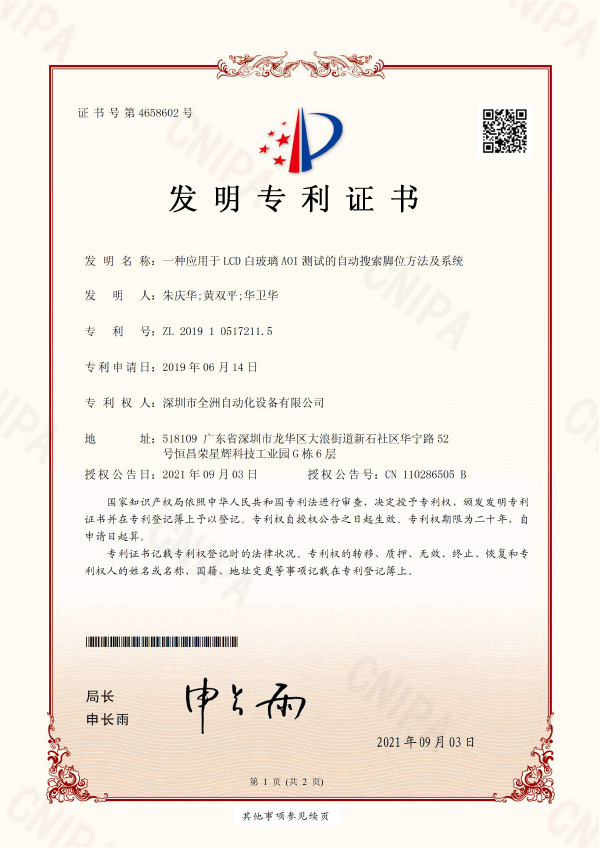 深圳市全洲自動(dòng)化設(shè)備有限公司是一家集研發(fā)、生產(chǎn)、銷售為一體的國(guó)家高新技術(shù)企業(yè),擁有一支強(qiáng)大、資深的技術(shù)研發(fā)團(tuán)隊(duì),及完善的生產(chǎn)、銷售服務(wù)隊(duì)伍。公司致力于LCD和半導(dǎo)體行業(yè)的智能制造,先后推出了全自動(dòng)貼片、裝腳、點(diǎn)膠、固化、切腳流水線,全自動(dòng)LCD AOI測(cè)試機(jī)、COG/COB自動(dòng)AOI測(cè)試機(jī)、TFT多畫面測(cè)試機(jī)。并破解行業(yè)難題,研發(fā)了分辨率達(dá)微米級(jí)的LCD整模圖像檢測(cè)機(jī)等高端設(shè)備,可應(yīng)用于LCD/TFT/集成電路/晶圓檢測(cè)等領(lǐng)域,有效提升生產(chǎn)和測(cè)試效率,保障產(chǎn)品品質(zhì)。受到了新老客戶的歡迎和好評(píng),與業(yè)內(nèi)眾多知名企業(yè)建立了長(zhǎng)期合作伙伴關(guān)系。公司秉承“誠(chéng)信經(jīng)營(yíng)、科技創(chuàng)新”的經(jīng)營(yíng)理念和“團(tuán)結(jié)、合作、進(jìn)取”的企業(yè)精神,竭誠(chéng)為客戶提供優(yōu)質(zhì)的產(chǎn)品,完善的技術(shù)服務(wù)!讓我們攜手,互利雙贏,共同發(fā)展,一起邁向企業(yè)美好的新未來(lái)、新坐標(biāo)!